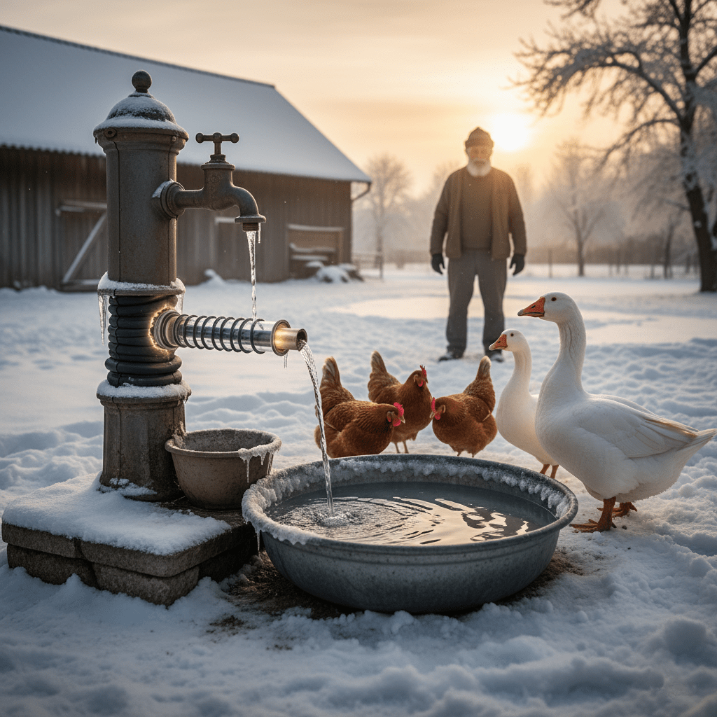 Apa este, fără îndoială, cea mai importantă resursă. Deshidratarea iarna este o problemă gravă pentru orice animal, inclusiv pentru păsările de curte.