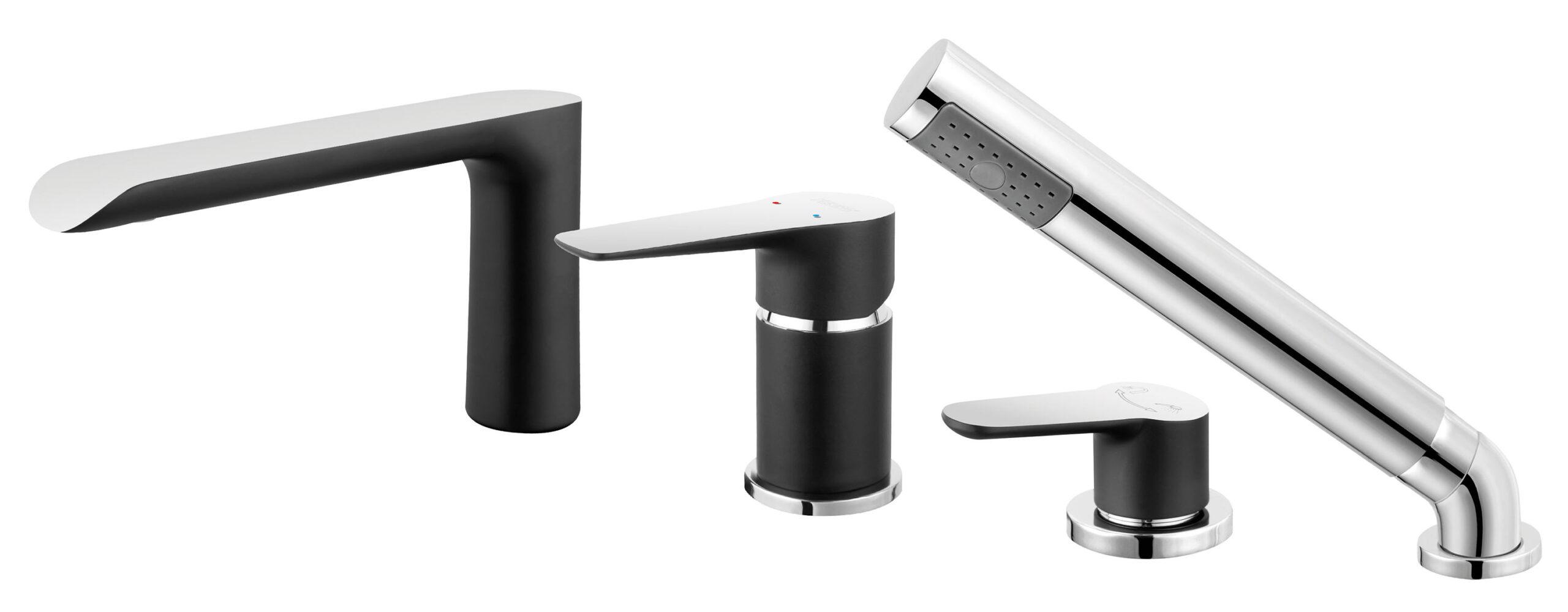 baterie cada cu montaj pe cada si dus extractibil inclus, colectia adore, producator ferroBaterie Cada Adore Black/Chrome Cu Montaj Pe Cada