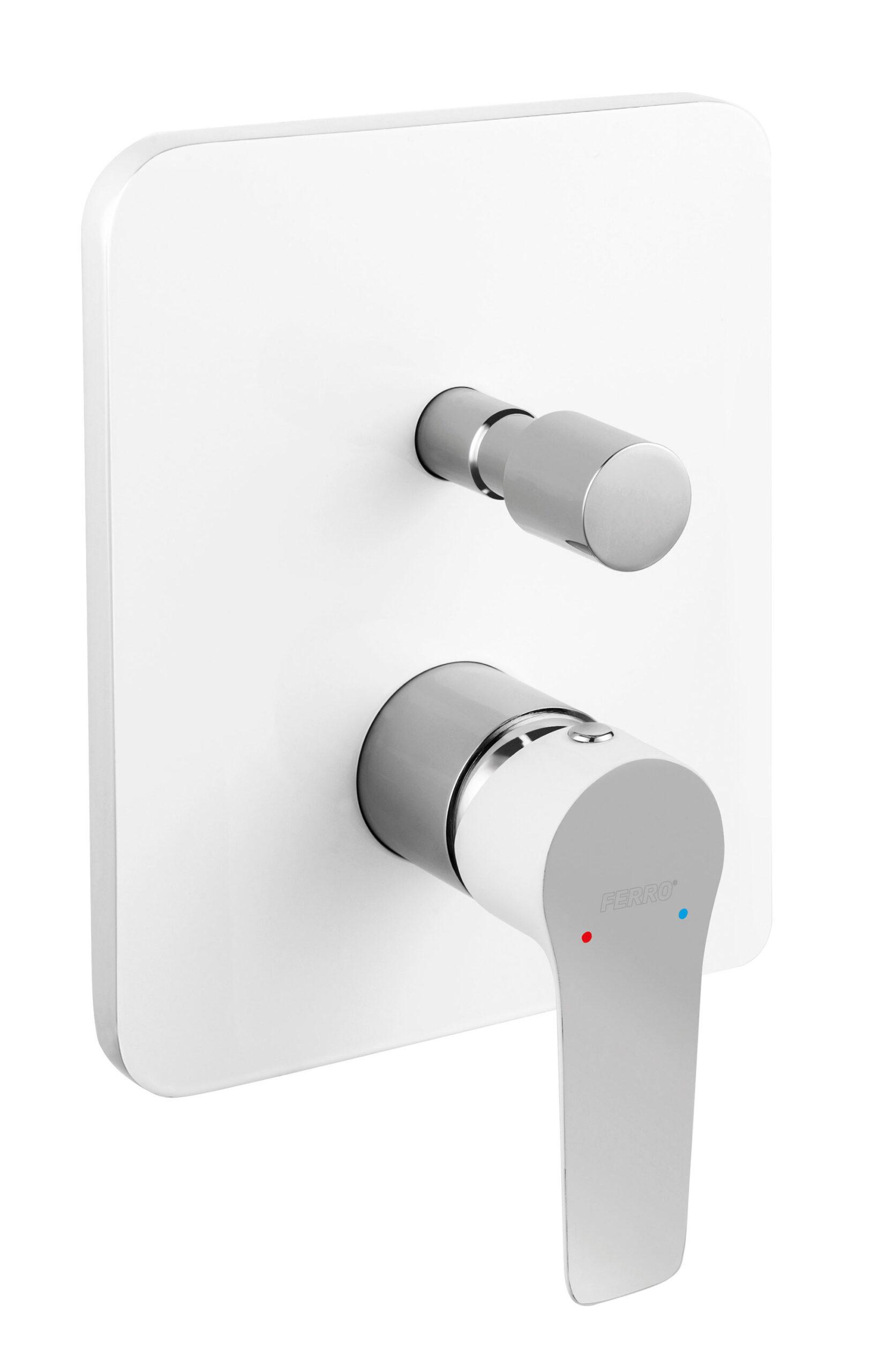 Baterie dus incastrata din seria adore producator Ferro cu finisaj alb crom, reprezintă optiunea modernă și funcțională pentru orice baie.