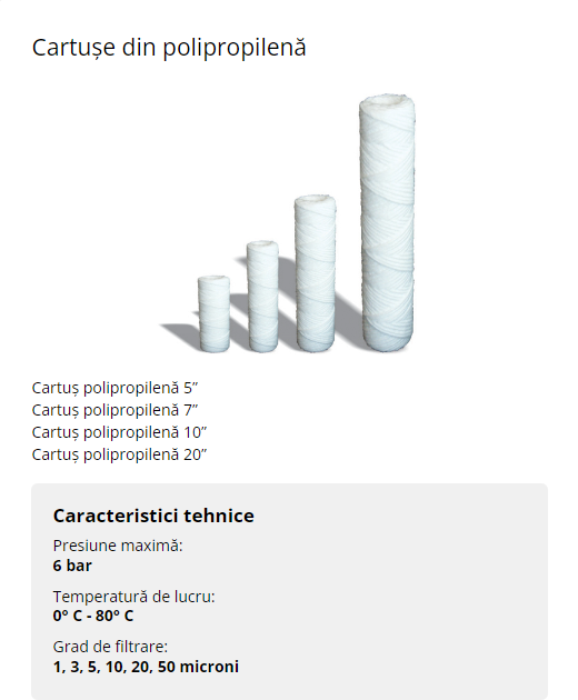 Cartușele din polipropilena pot fi o opțiune economică și ecologică pentru filtrarea apei. Este important să înțelegi că acestea pot reține doar particulele mai mari și sedimentele din apă, nu și contaminanții microbiologici sau chimici. Pentru o filtrare mai completă, ar putea fi necesar să folosești și alte tipuri de cartușe sau filtre suplimentare. In combinație cu cel din bumbac ( polipropilena) ai putea sa pui si filtru carbune activ si filtru sita.