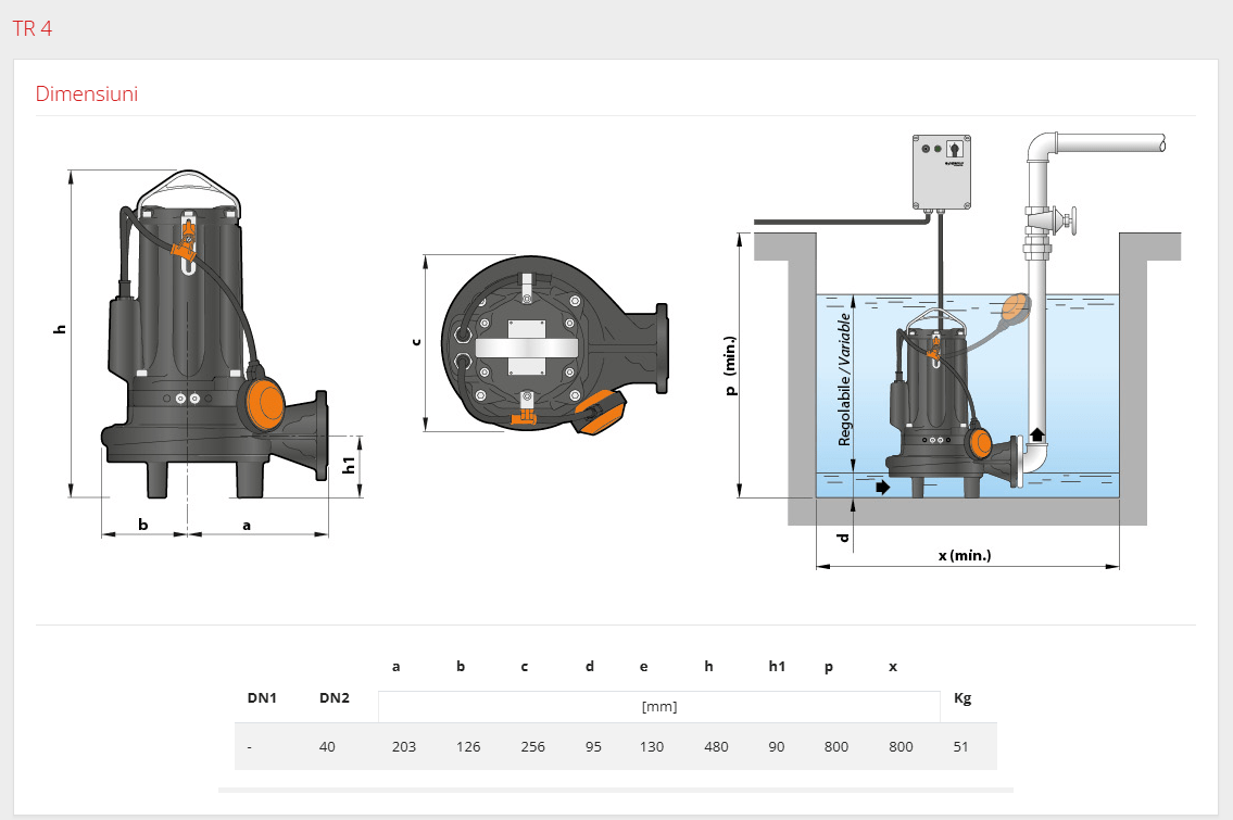 Pompa submersibila cu tocator pentru apa murdara Tritus TR 4 de la Pedrollo este o pompă robustă și fiabilă. Conceputa special pentru pompare ape murdare cu materii solide și fibre. Asigură o funcționare eficientă, iar tocatorul integrat mărunțește eficient impuritățile, prevenind blocajele. Este ideală pentru utilizări casnice și civile, cum ar fi evacuarea apelor din fose septice, canalizari, subsoluri etc.