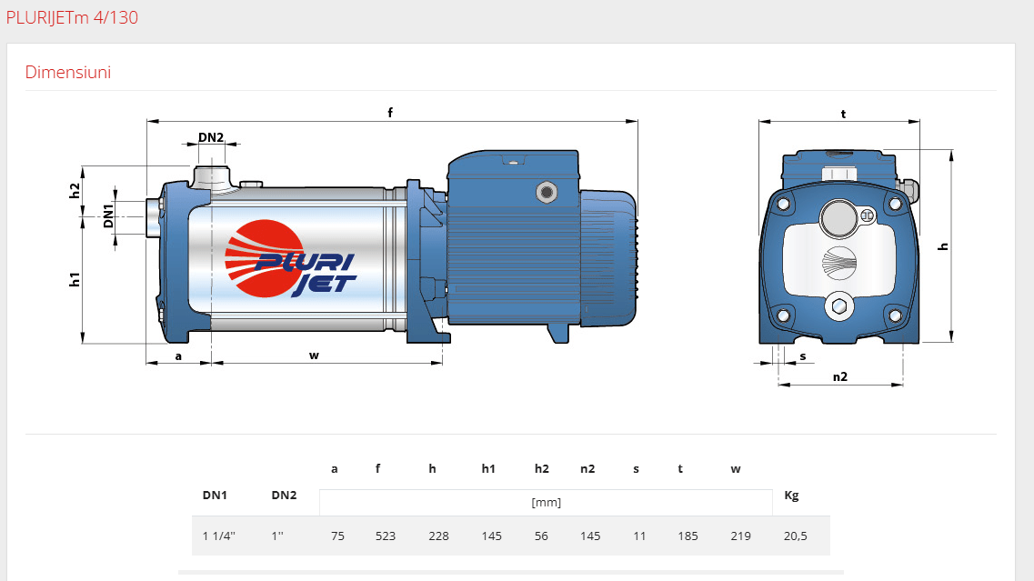 Producator Pedrollo Italia. Fisa produs aici.