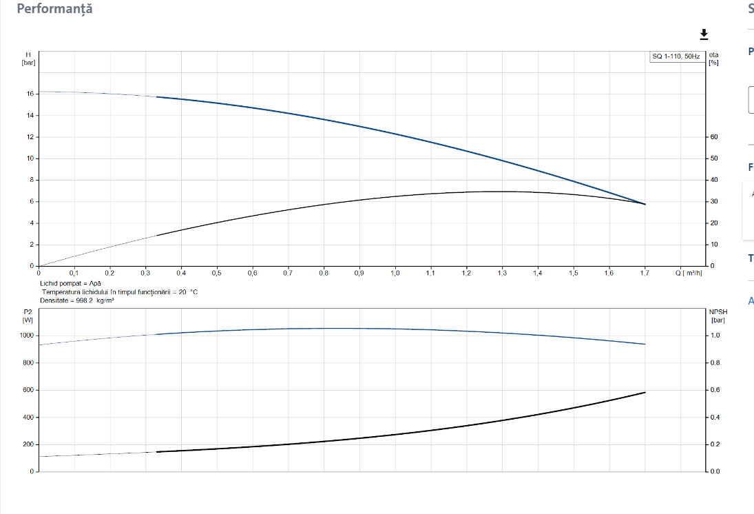 Eficiență energetică: Tehnologia avansată utilizată în construcția pompei contribuie la o eficiență energetică ridicată, reducând costurile de operare.
