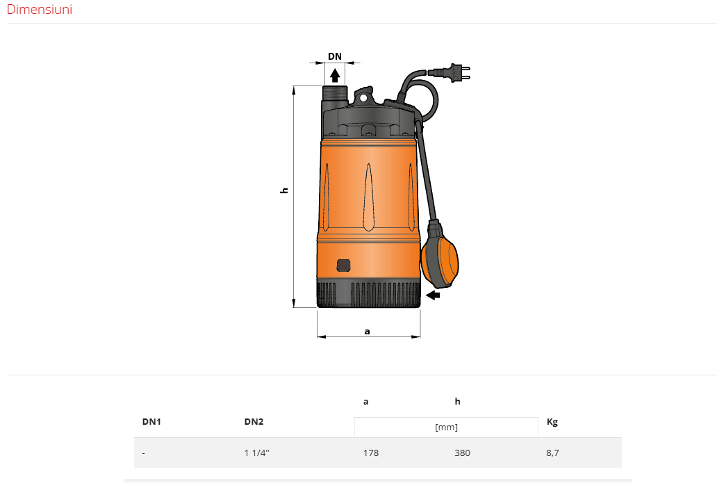 Pompa submersibila cu plutitor pentru apa curata care garantează o fiabilitate și mai mare datorita turbinelor.